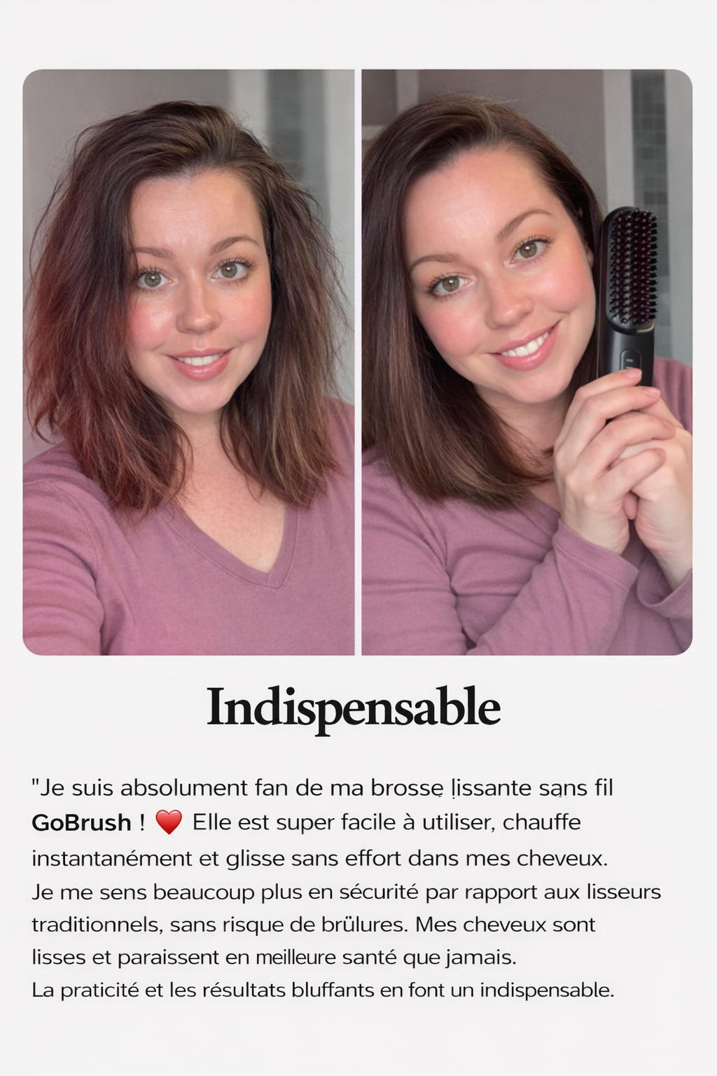 Mes cheveux sont beaucoup plus lisses en quelques minutes.