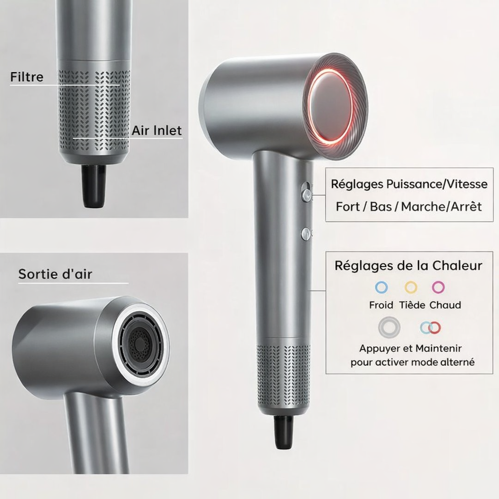 - Température réglable de 180°C à 230°C, adaptée à tous types de cheveux